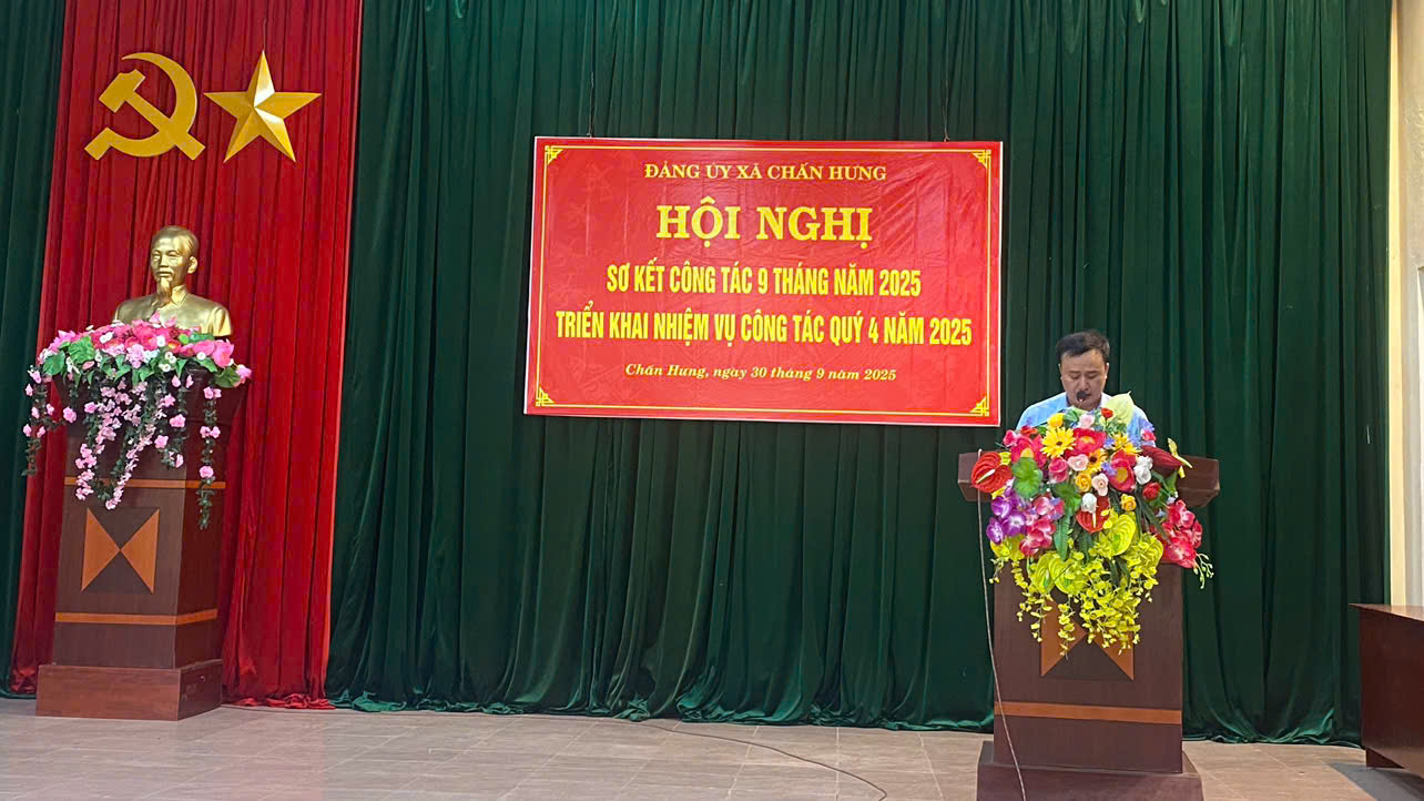 Sáng 30/9, Tại hội trường Đảng uỷ xã, Ban Thường vụ Đảng uỷ xã Chấn Hưng tổ chức HN sơ kết công tác 9 tháng năm 2025, triển khai nhiệm vụ quý 4 năm 2025