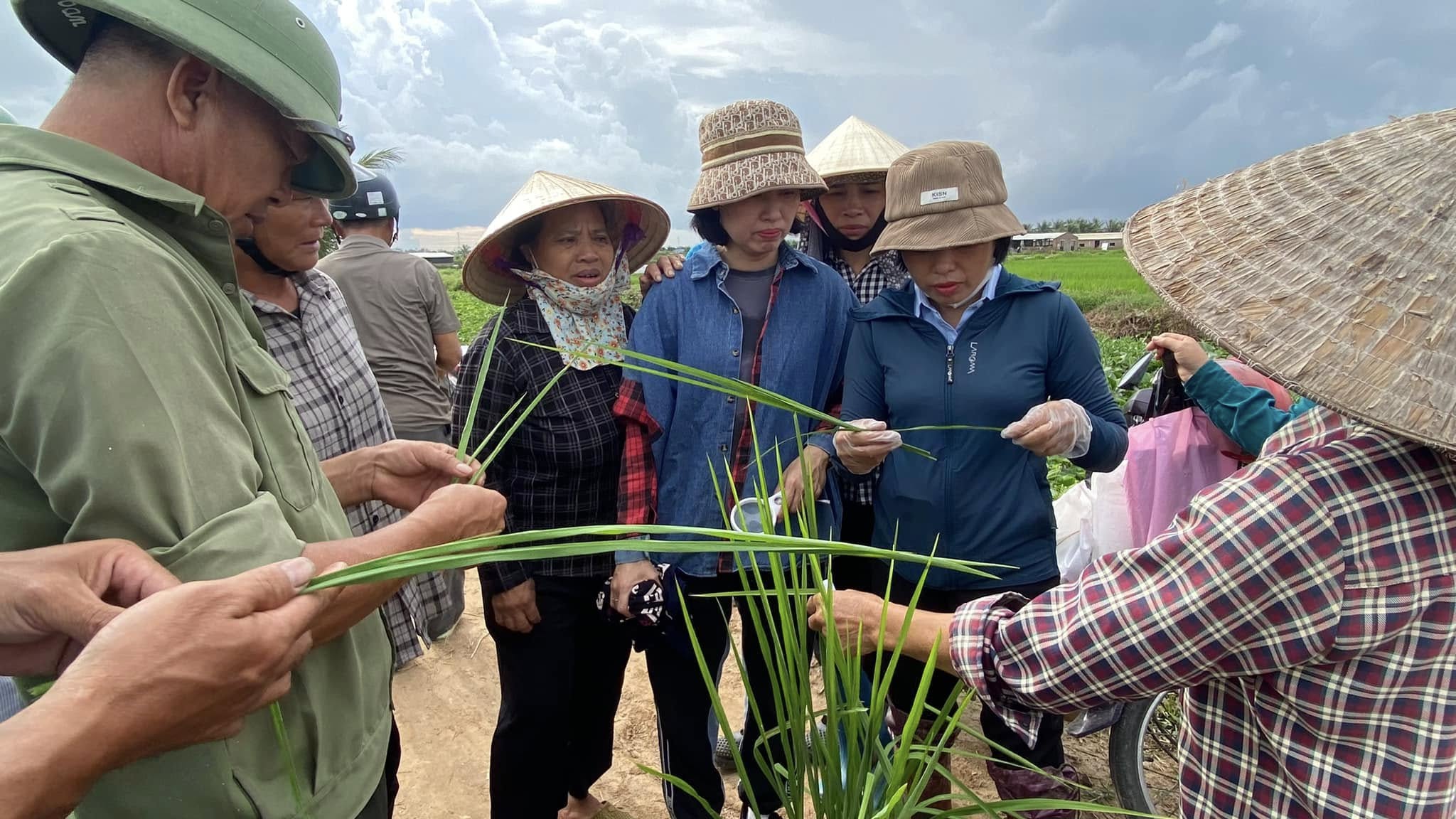 Khuyến nông viên đã trực tiếp thăm đồng, hướng dẫn bà con nhận diện và phòng trừ các loại sâu bệnh nguy hiểm như sâu đục thân 2 chấm, sâu cuốn lá nhỏ, đạo ôn cổ bông. Bà con được khuyến cáo áp dụng nguyên tắc “4 đúng” và phun thuốc vào thời điểm sâu còn non, buổi chiều khi lá đã khô sương,sủ dụng thuốc đặc hiệu, để đạt hiệu quả cao nhất.