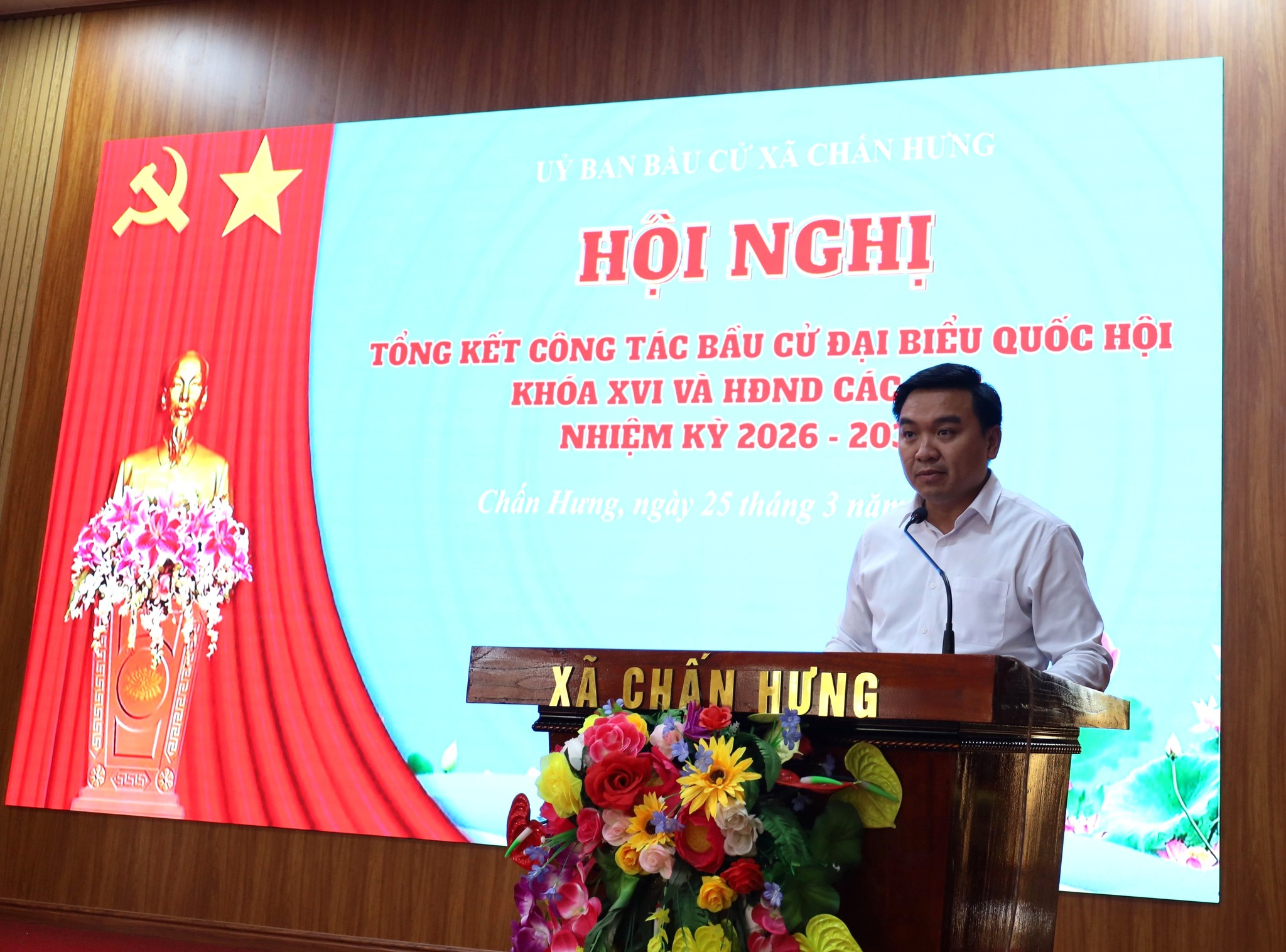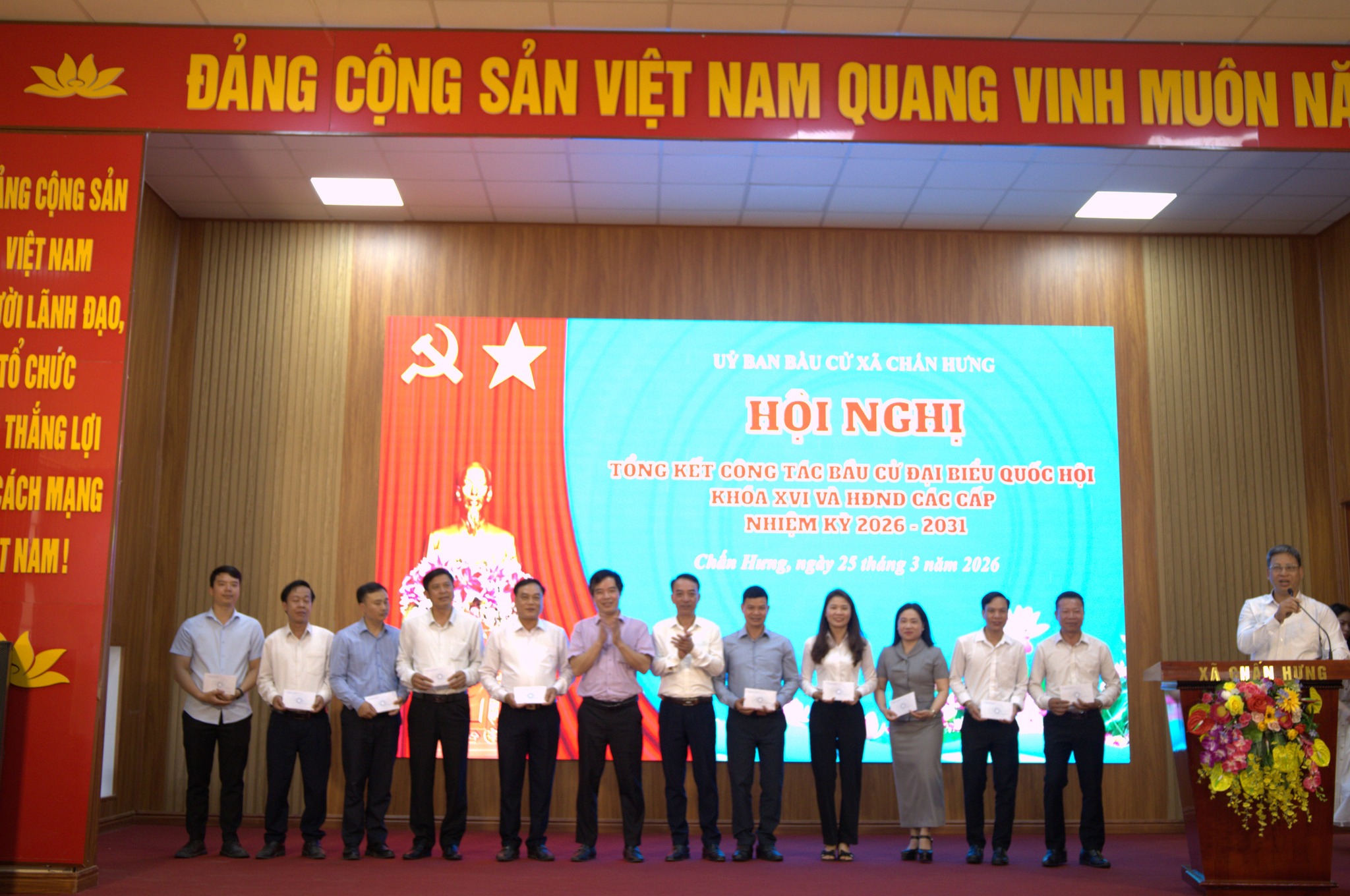 Sáng ngày 25/3/2026, tại Hội trường Đảng ủy xã Chấn Hưng đã tổ chức Hội nghị tổng kết cuộc bầu cử đại biểu Quốc hội khóa XVI và đại biểu HĐND các cấp nhiệm kỳ 2026–2031.