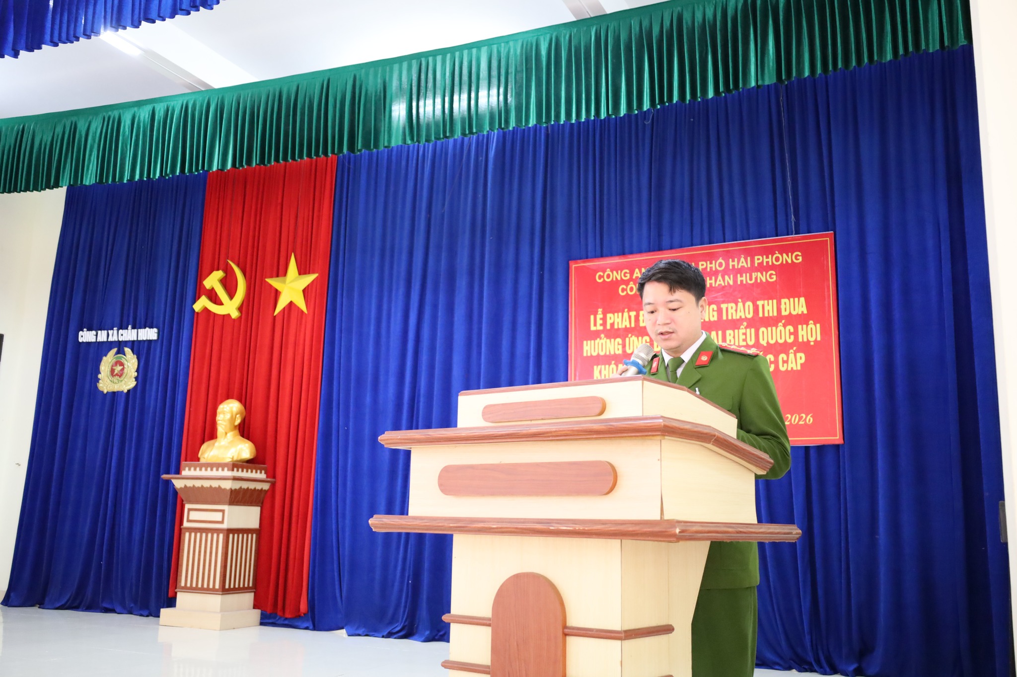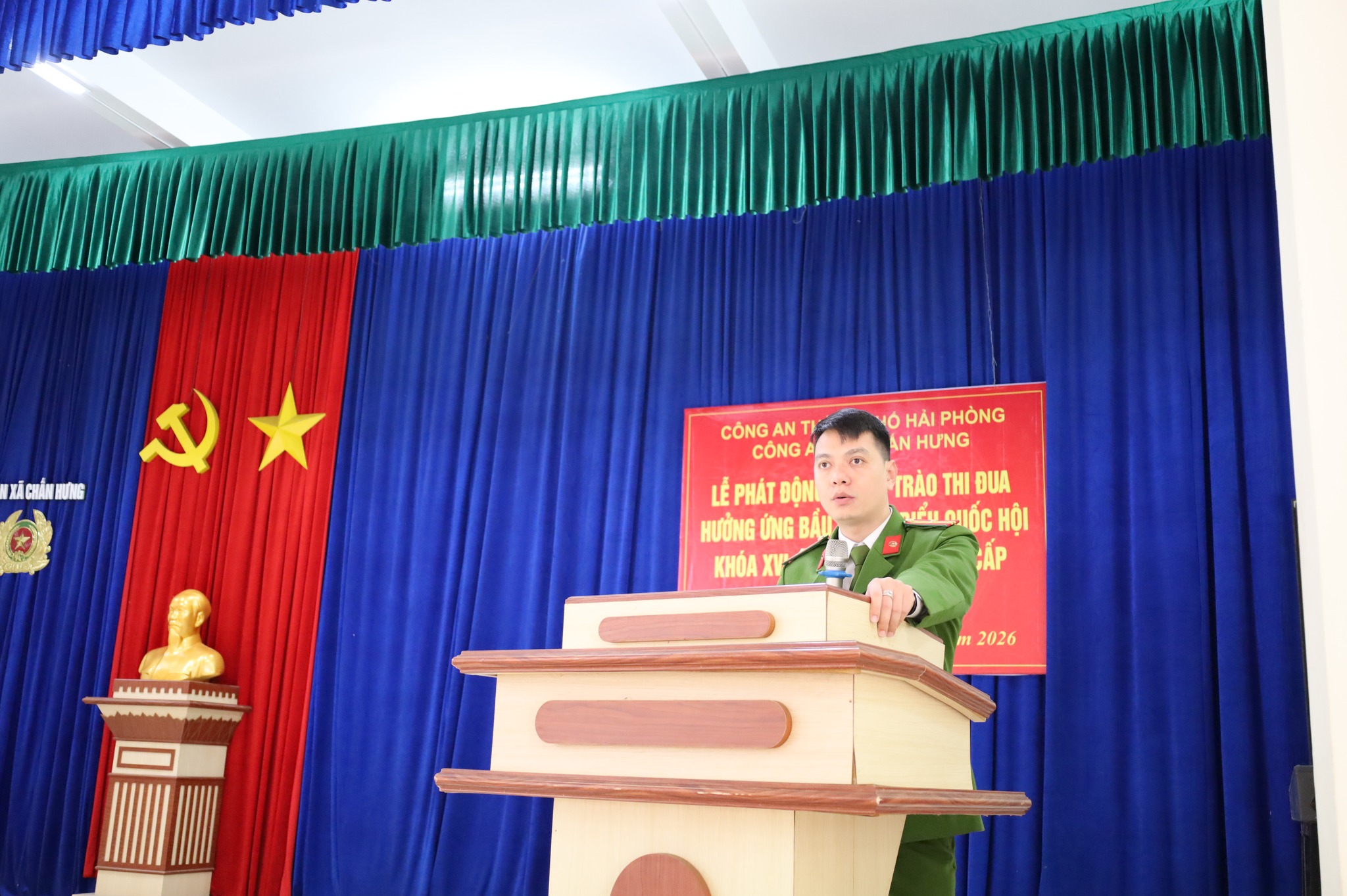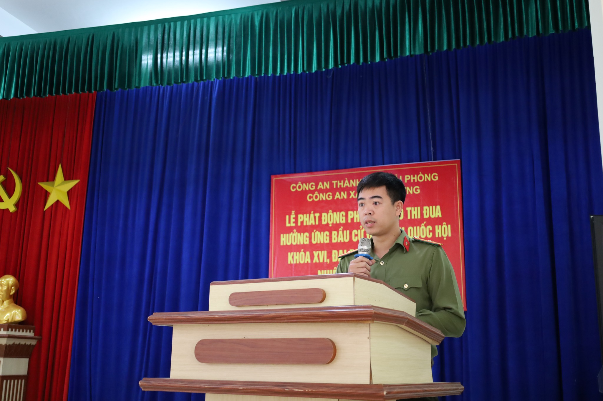 Đại diện lực lượng tham gia bảo đảm an ninh trật tự, đồng chí Nguyễn Chung Du đã phát biểu hưởng ứng phong trào thi đua với quyết tâm hoàn thành tốt mọi nhiệm vụ được giao.