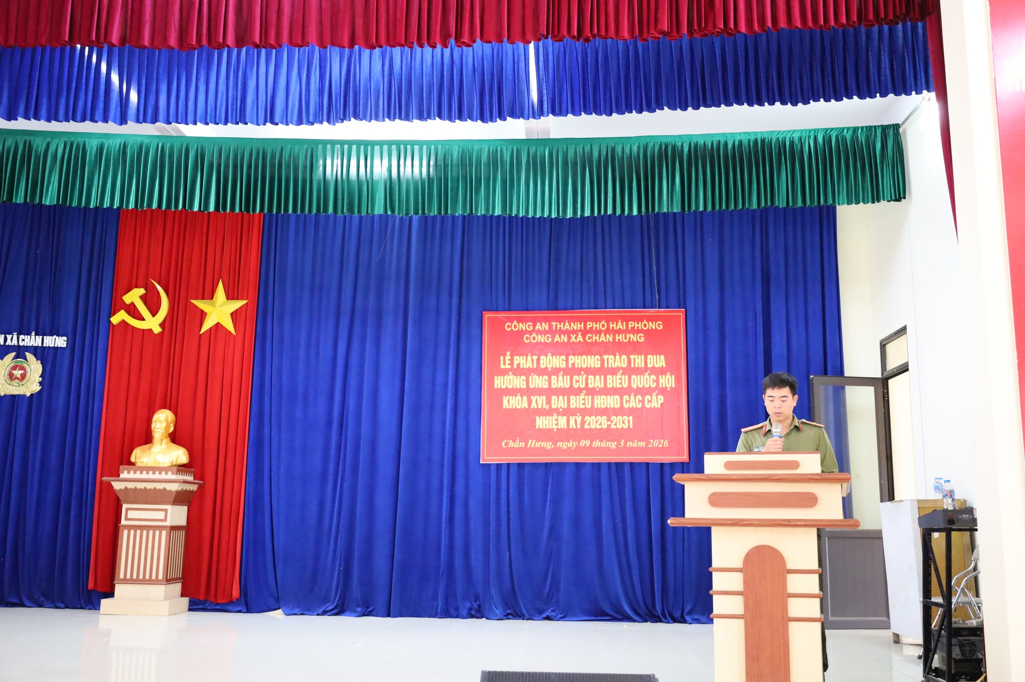 Sáng ngày 09/3/2026, tại Hội trường Công an xã Chấn Hưng, Công an xã đã tổ chức Lễ phát động phong trào thi đua hưởng ứng cuộc bầu cử đại biểu Quốc hội khóa XVI và đại biểu HĐND các cấp nhiệm kỳ 2026–2031.