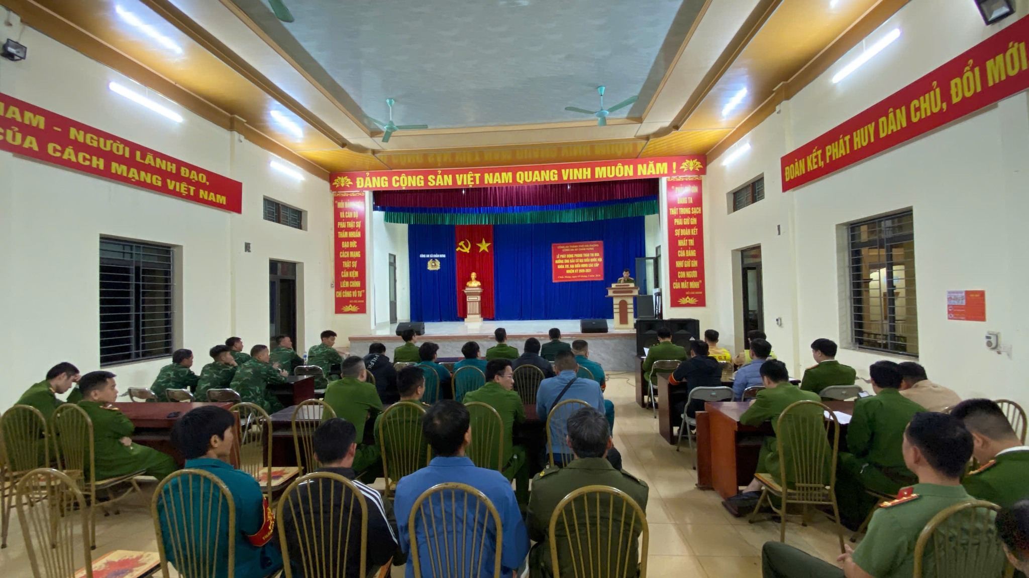tối ngày 10/3/2026, Công an xã Chấn Hưng đã phối hợp với Phòng PC08 – Công an thành phố Hải Phòng, Đồn Biên phòng Vinh Quang, Ban Chỉ huy Quân sự và lực lượng dân phòng xã tổ chức ra quân tuần tra, kiểm soát trên toàn địa bàn.