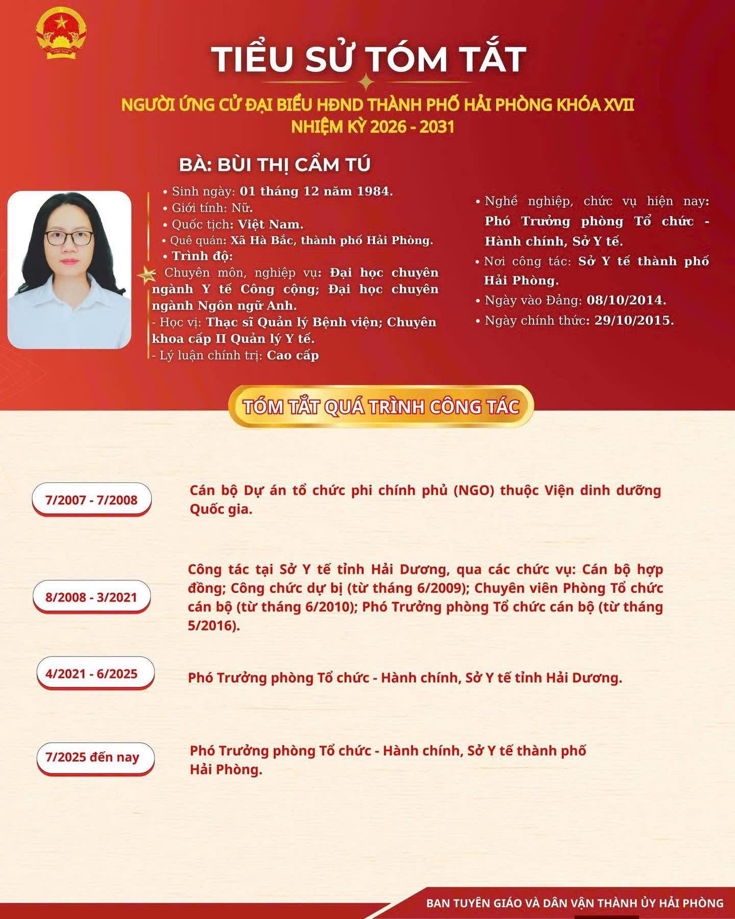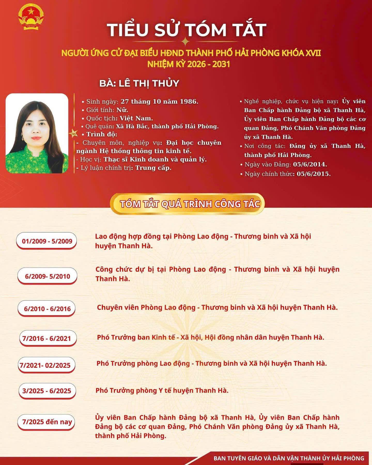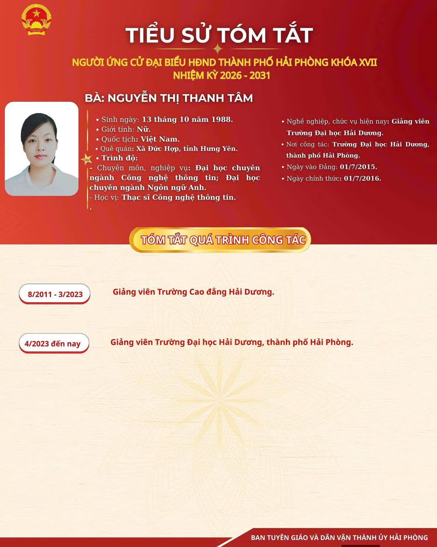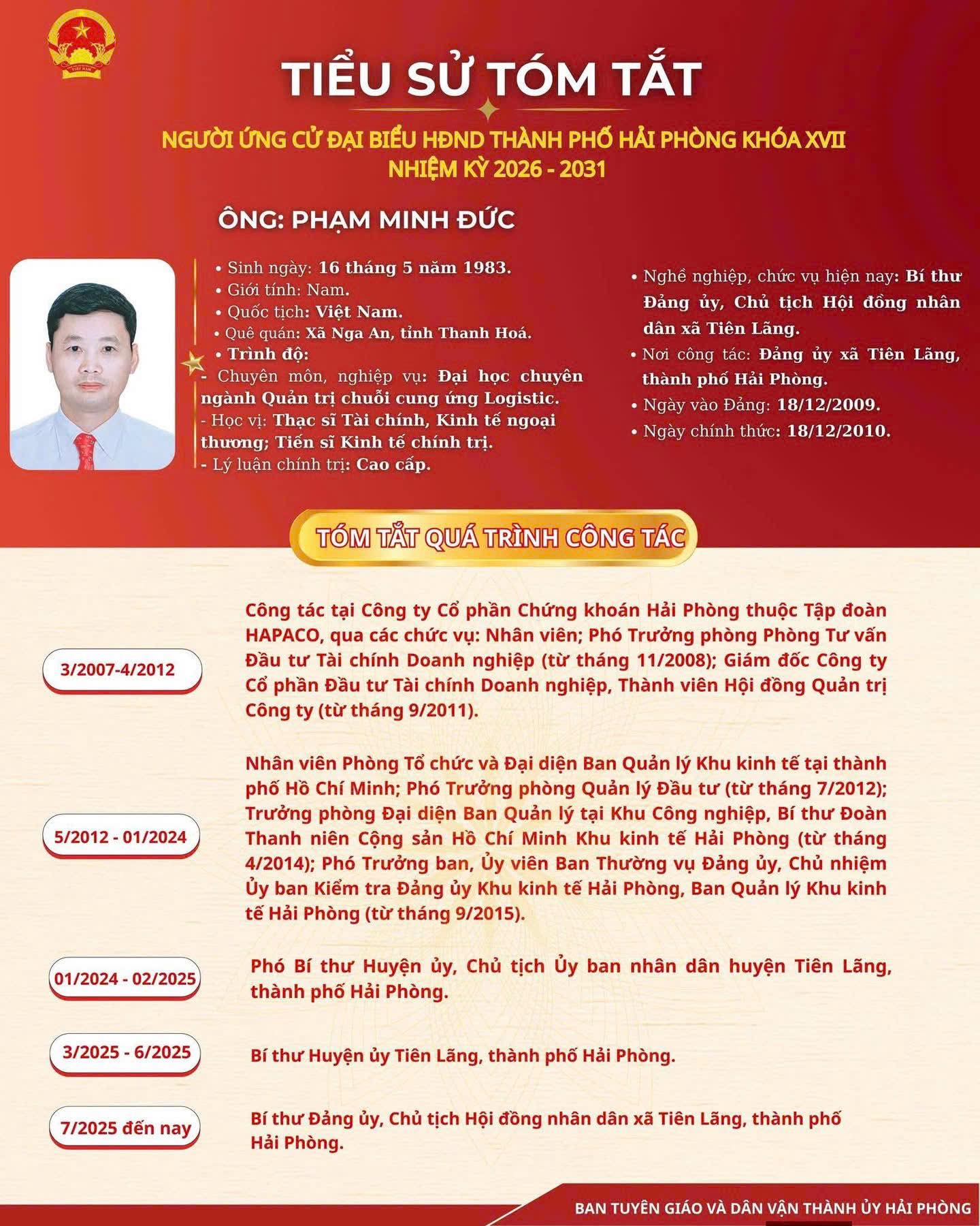 Danh sách và tiểu sử ứng viên đại biểu HĐND thành phố Hải Phòng Đơn vị bầu cử số 7: gồm 09 xã: Hùng Thắng Quyết Thắng, Chấn Hưng, Tân Minh, Tiên Minh, Tiên Lãng; An Khánh, An Quang, An Hưng, được bầu 05 đại biểu
