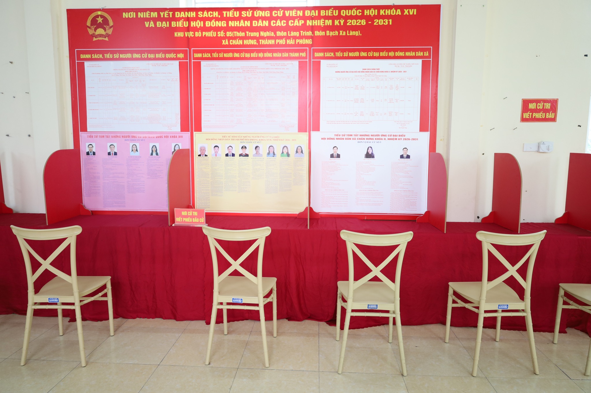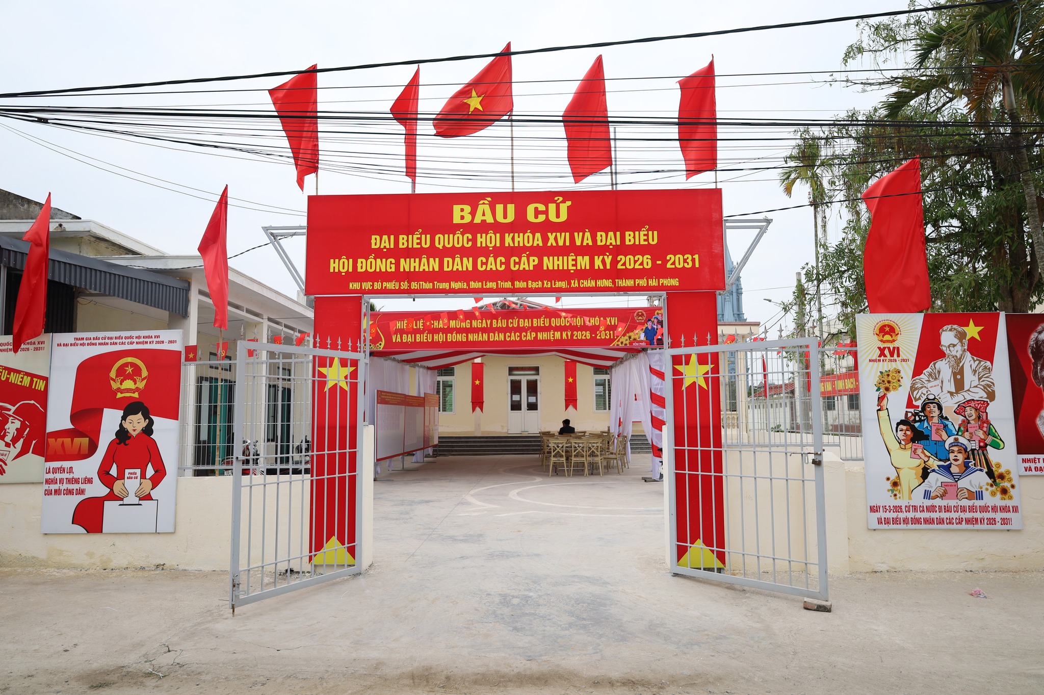 Trang trí khánh tiết tại khu vực bỏ phiếu