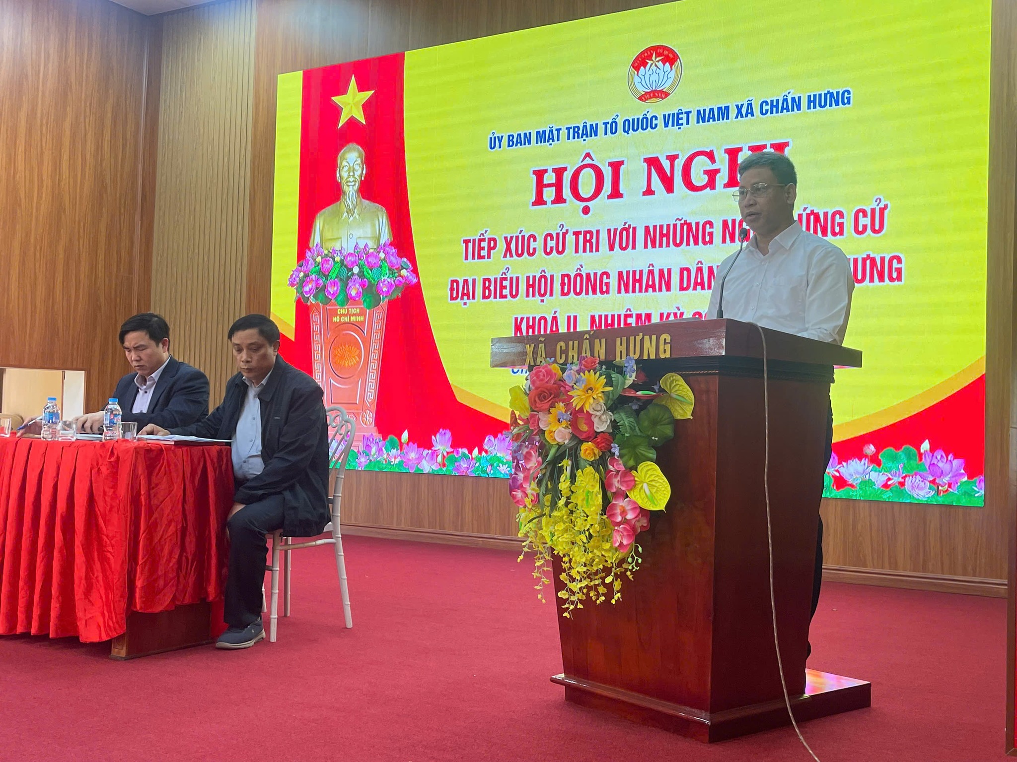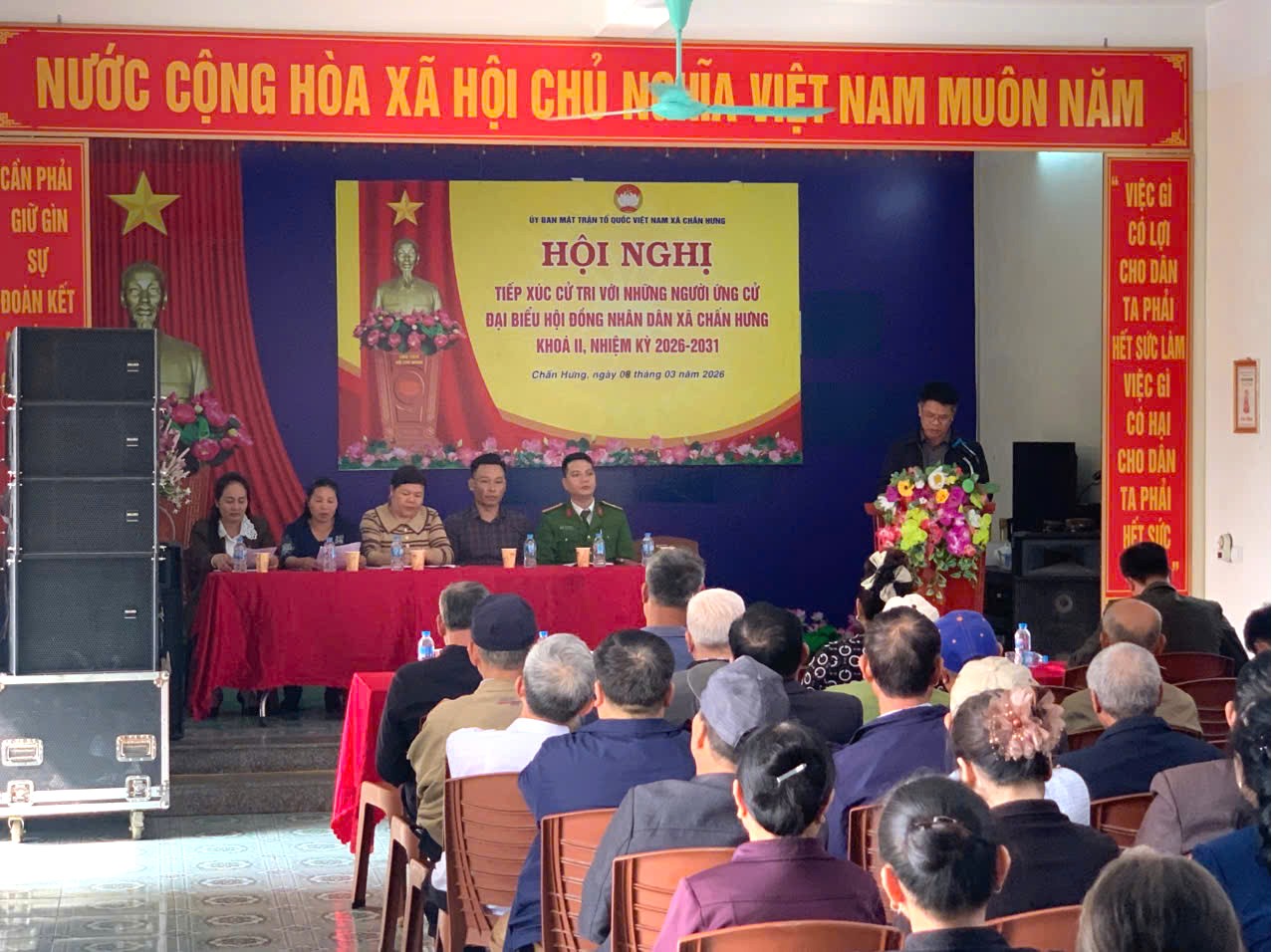 Chiều ngày 08/3/2026, các ứng cử viên đại biểu HĐND xã Chấn Hưng khóa II, nhiệm kỳ 2026 – 2031 đã tổ chức các hội nghị tiếp xúc cử tri, vận động bầu cử tại các đơn vị bầu cử trên địa bàn xã. Các hội nghị được tổ chức nghiêm túc, đúng quy định, tạo điều kiện để cử tri gặp gỡ, lắng nghe chương trình hành động của các ứng cử viên trước ngày bầu cử.