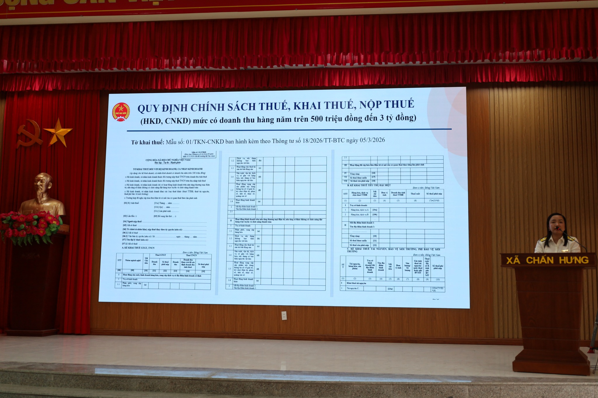 Chiều ngày 25/3/2026, tại Hội trường Nhà văn hóa xã Chấn Hưng đã tổ chức Hội nghị phổ biến chính sách thuế đối với hộ kinh doanh, cá nhân kinh doanh trên địa bàn.