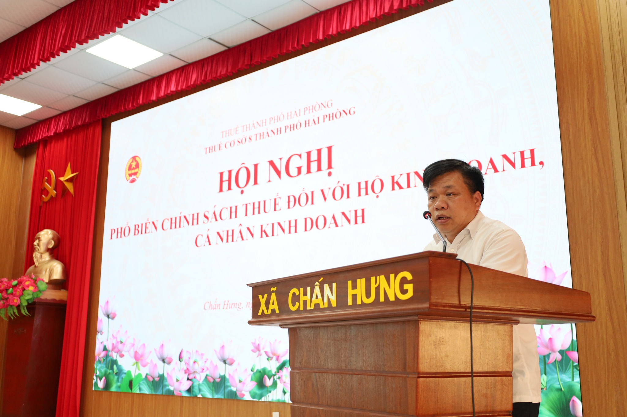 Dự hội nghị có đồng chí Vũ Văn Để – Phó Chủ tịch UBND xã; đại diện Phòng Kinh tế cùng cán bộ các bộ phận chuyên môn có liên quan và đông đảo hộ kinh doanh, cá nhân kinh doanh. Về phía cơ quan thuế có bà Bùi Thị Hiên – Phó Trưởng phòng Thuế cơ sở 8 cùng đại diện lãnh đạo, công chức các phòng chuyên môn thuộc cơ quan Thuế thành phố Hải Phòng.