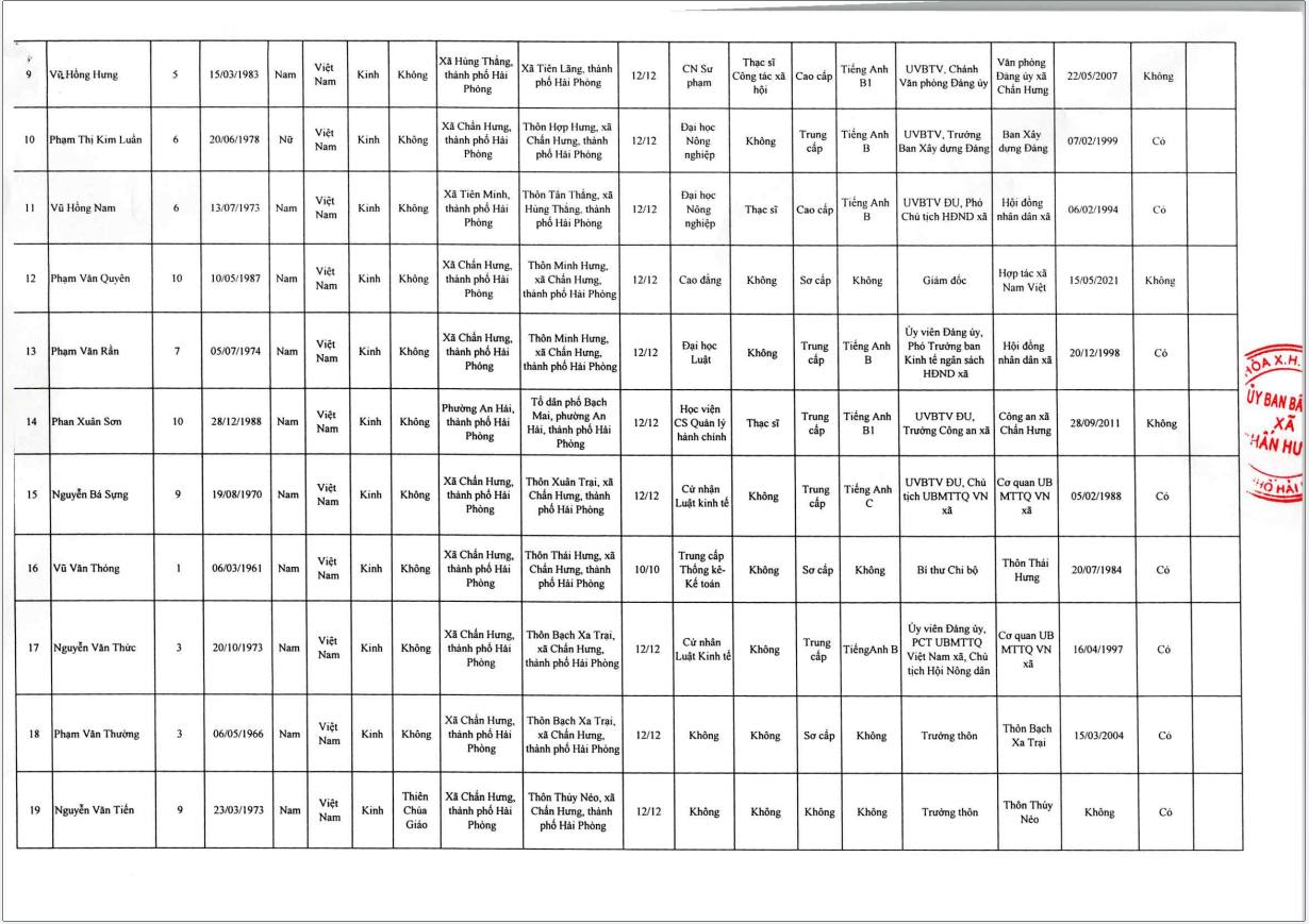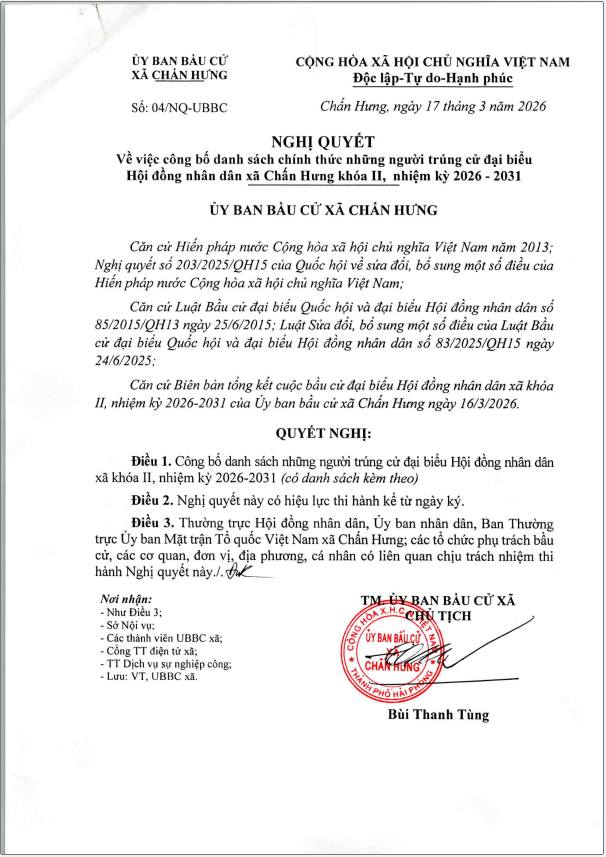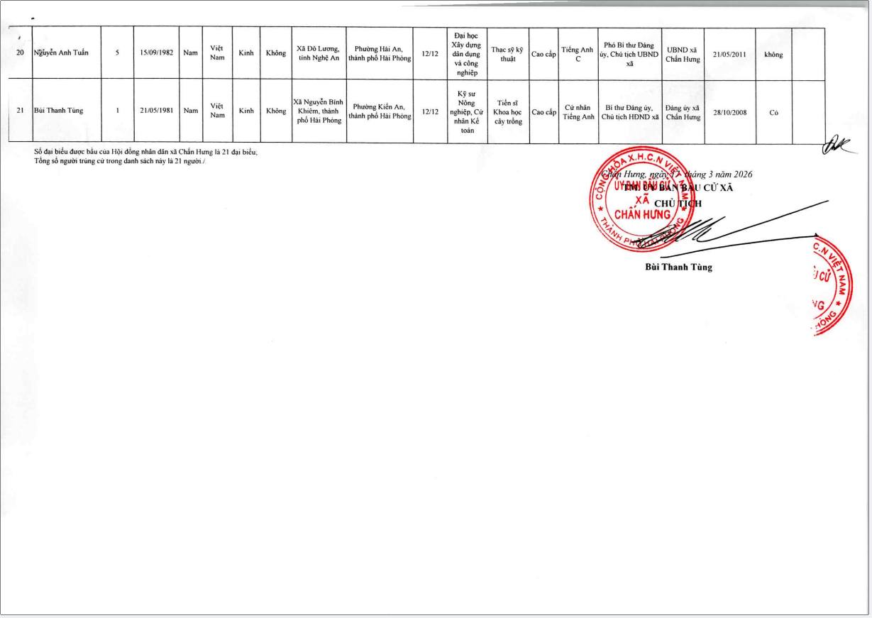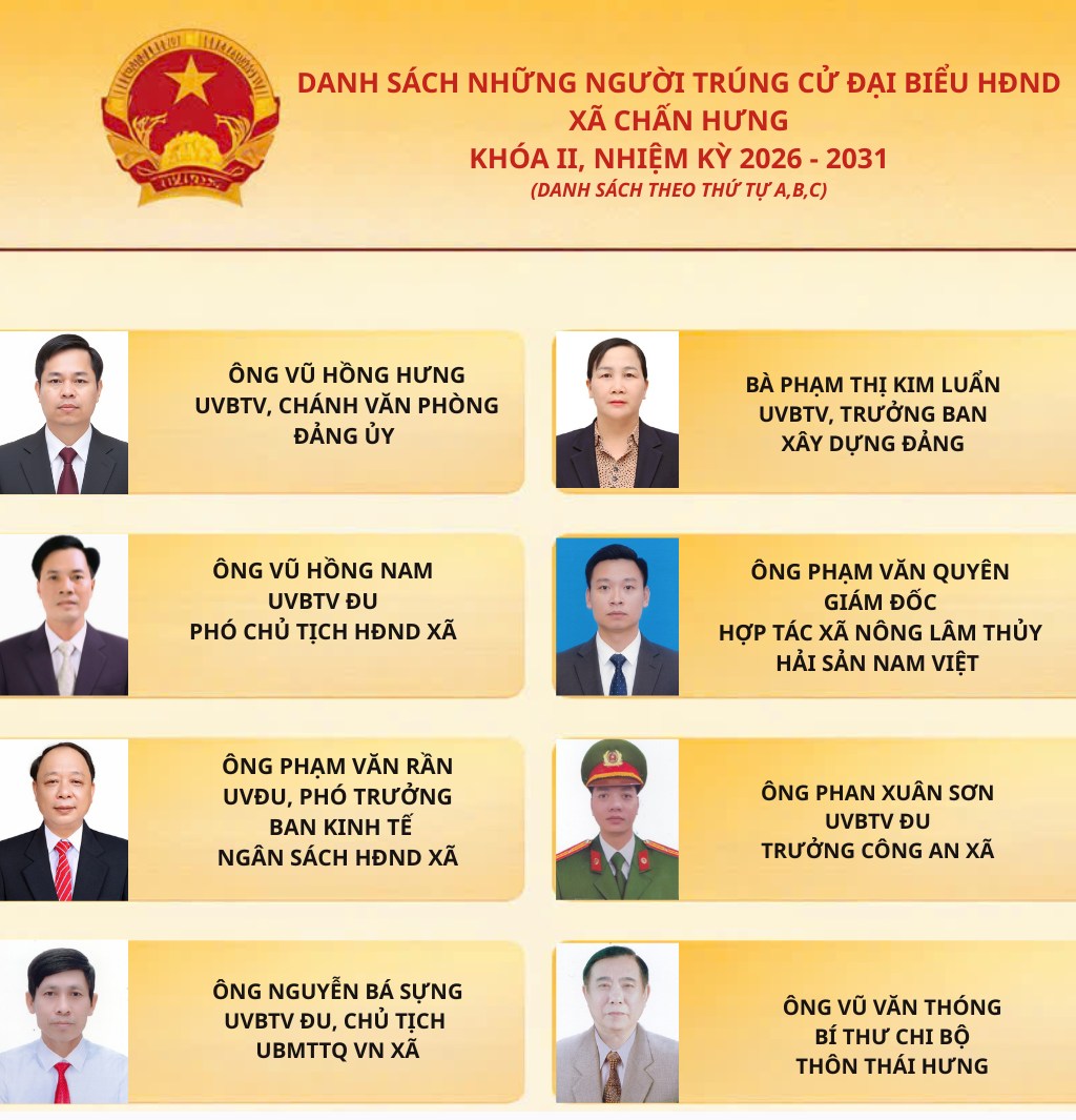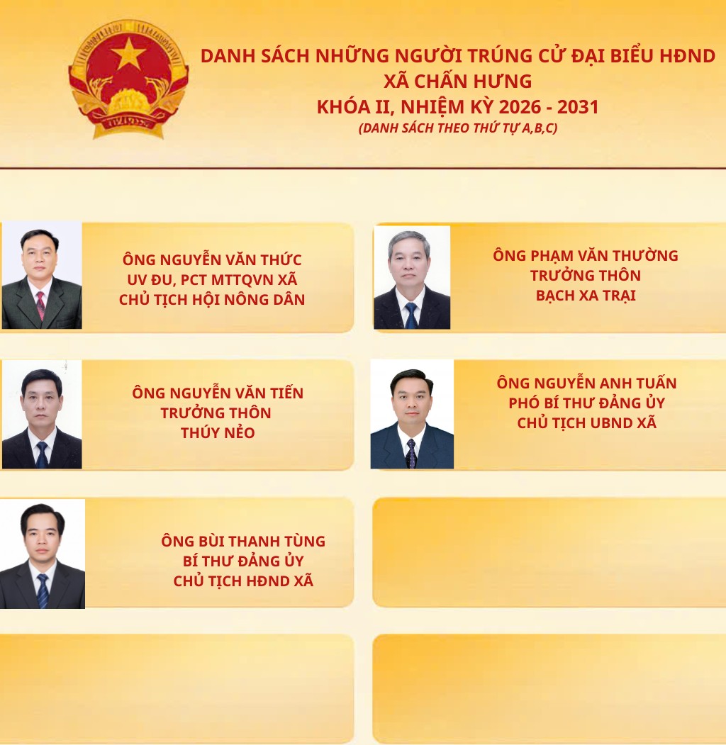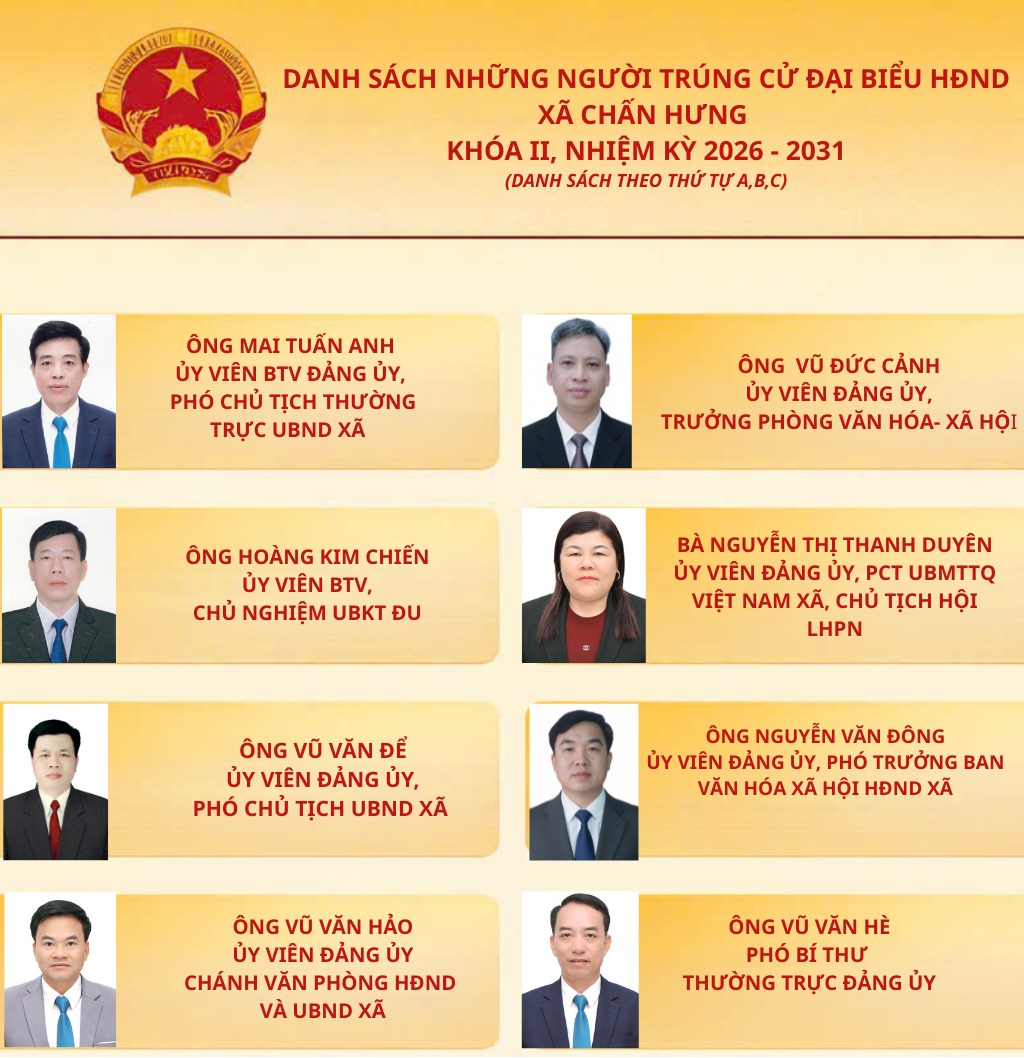 Danh sách những người trúng cử Hội đồng nhân dân xã Chấn Hưng khoá II, nhiệm kỳ 2026 -2031.