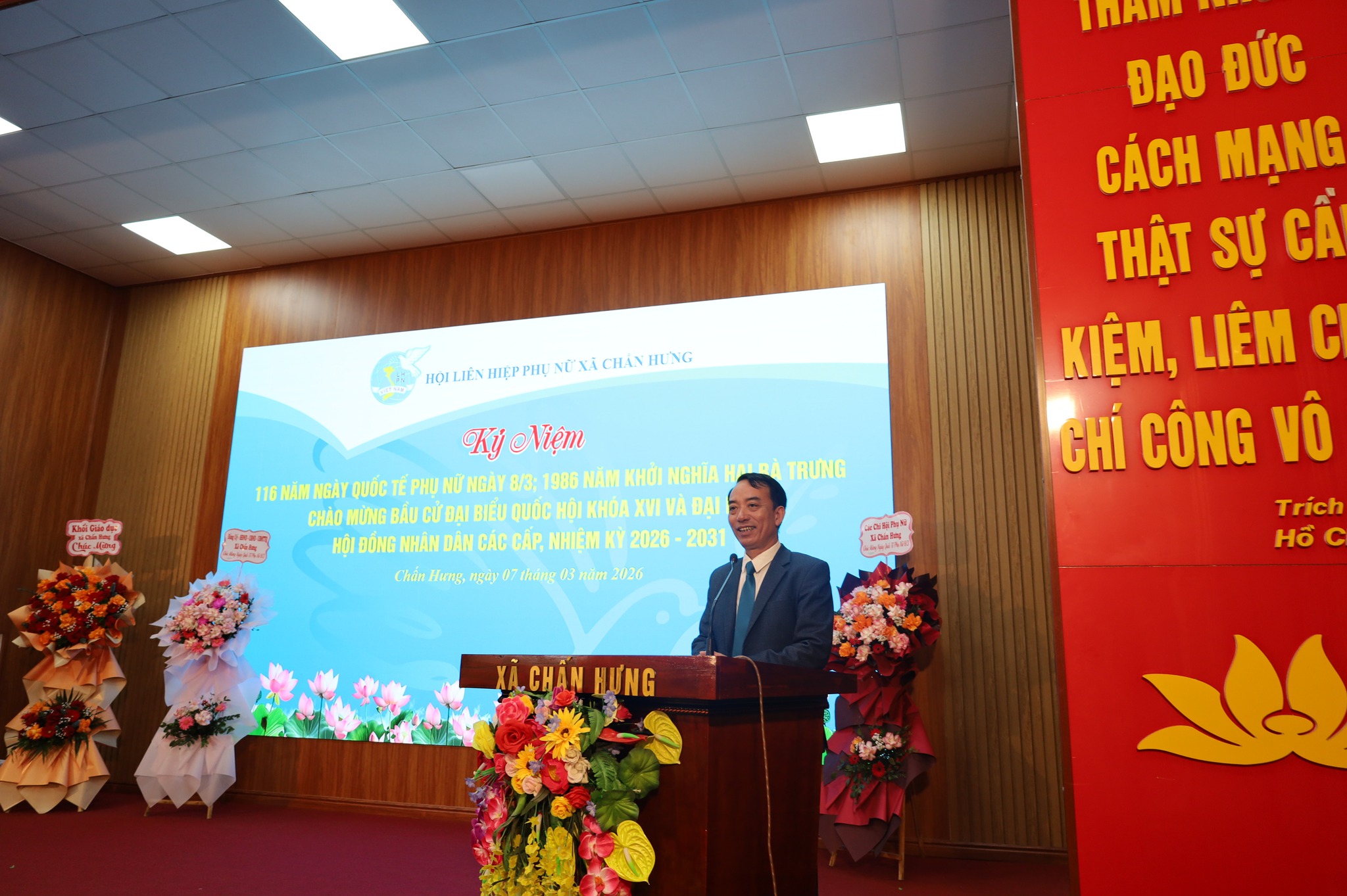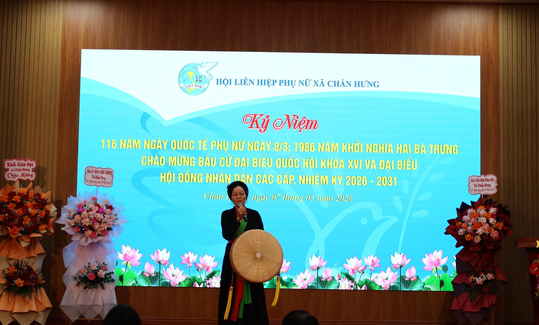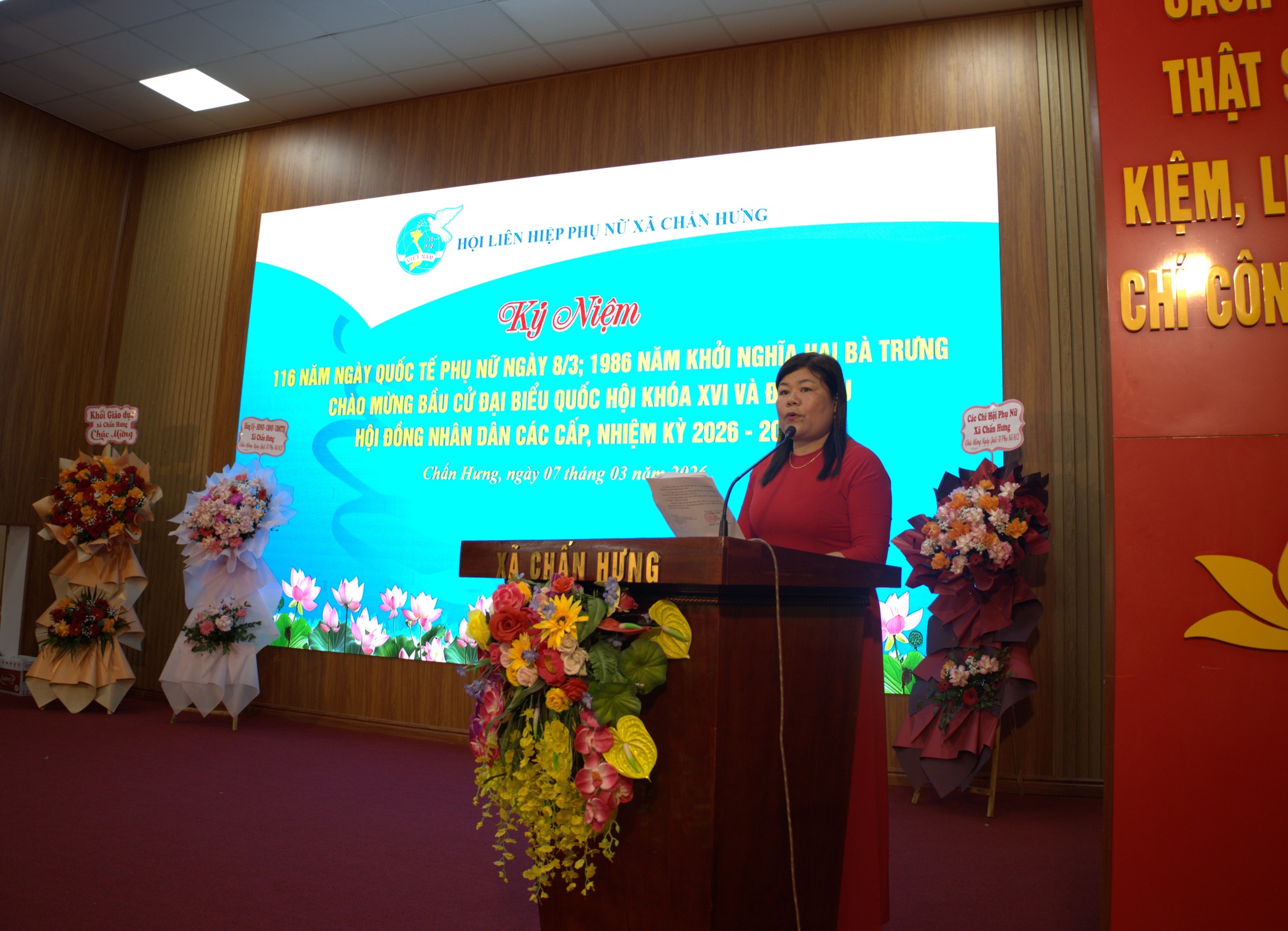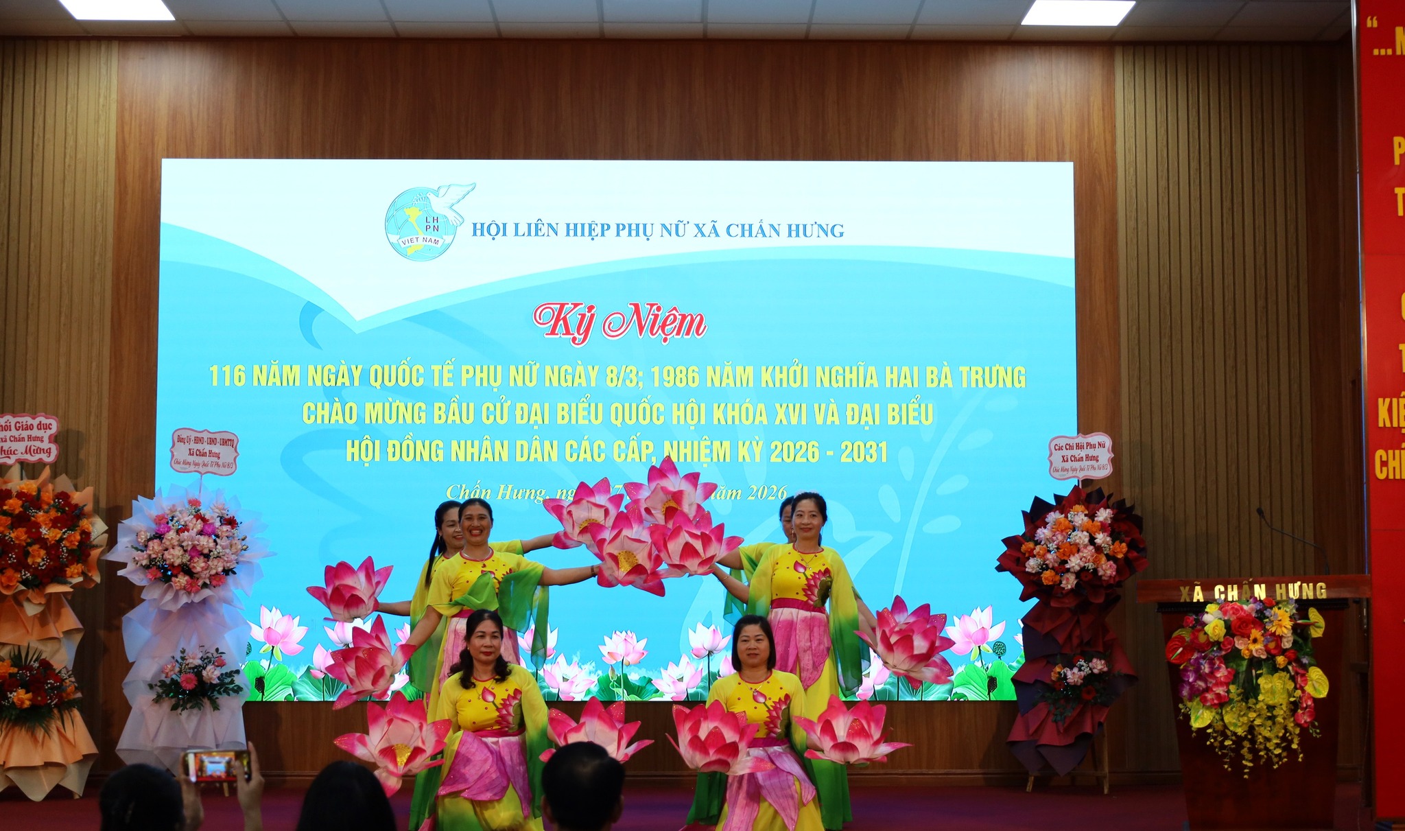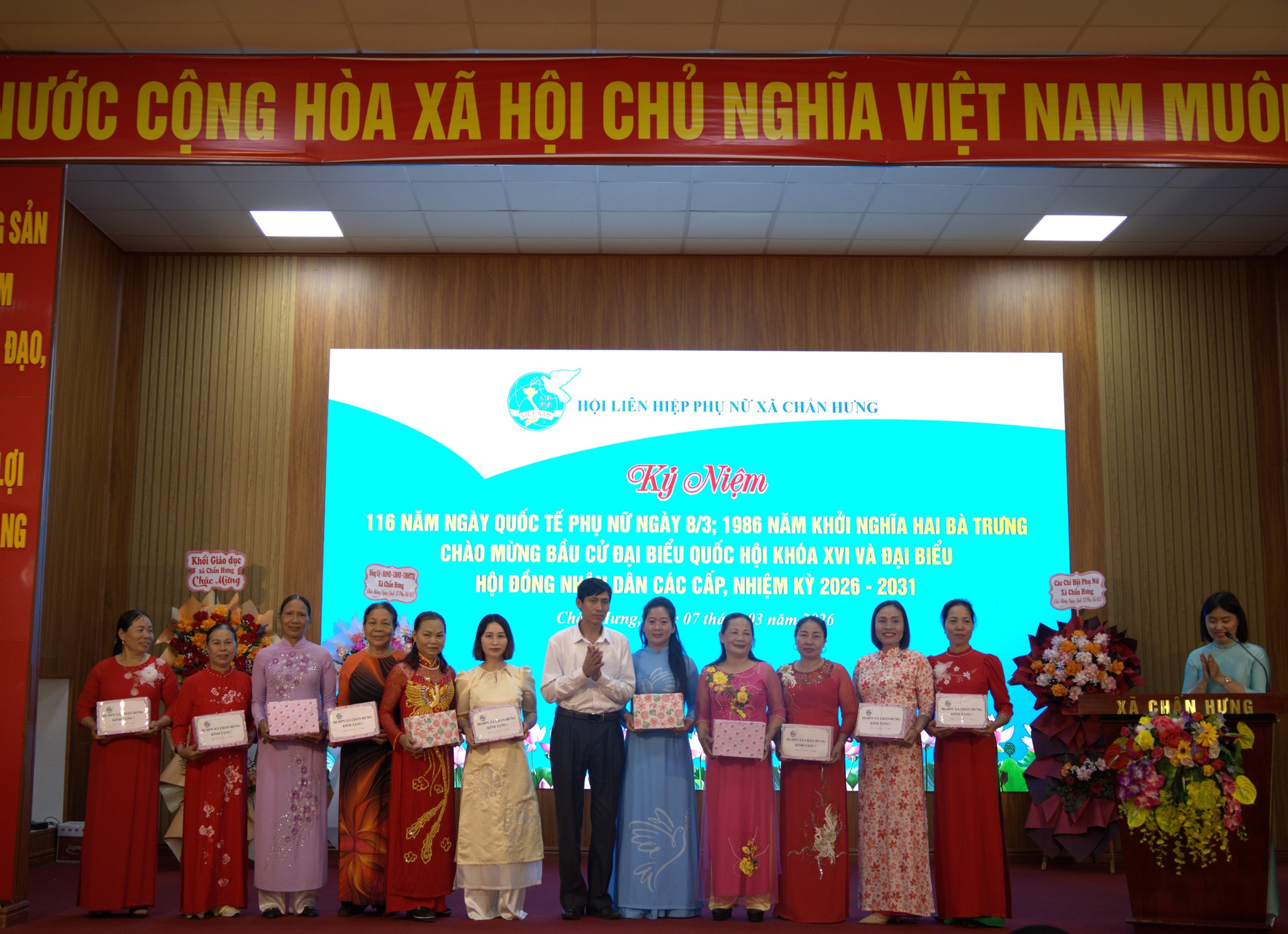 Ngày 07/3/2026, tại Hội trường Đảng ủy xã Chấn Hưng đã diễn ra Lễ kỷ niệm 116 năm Ngày Quốc tế Phụ nữ (08/3/1910 – 08/3/2026) và 1986 năm Khởi nghĩa Hai Bà Trưng trong không khí trang trọng, ấm áp và đầy ý nghĩa.