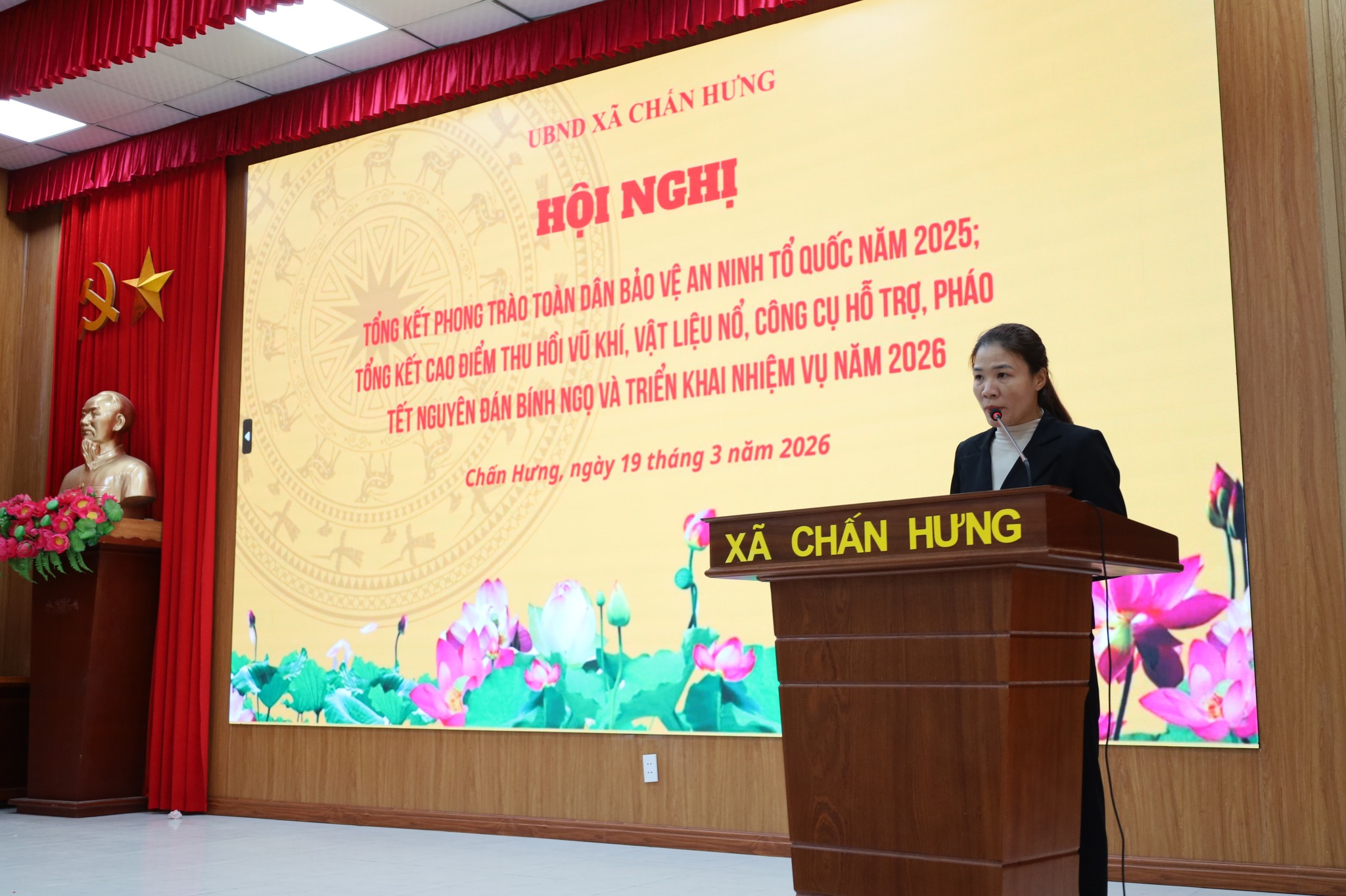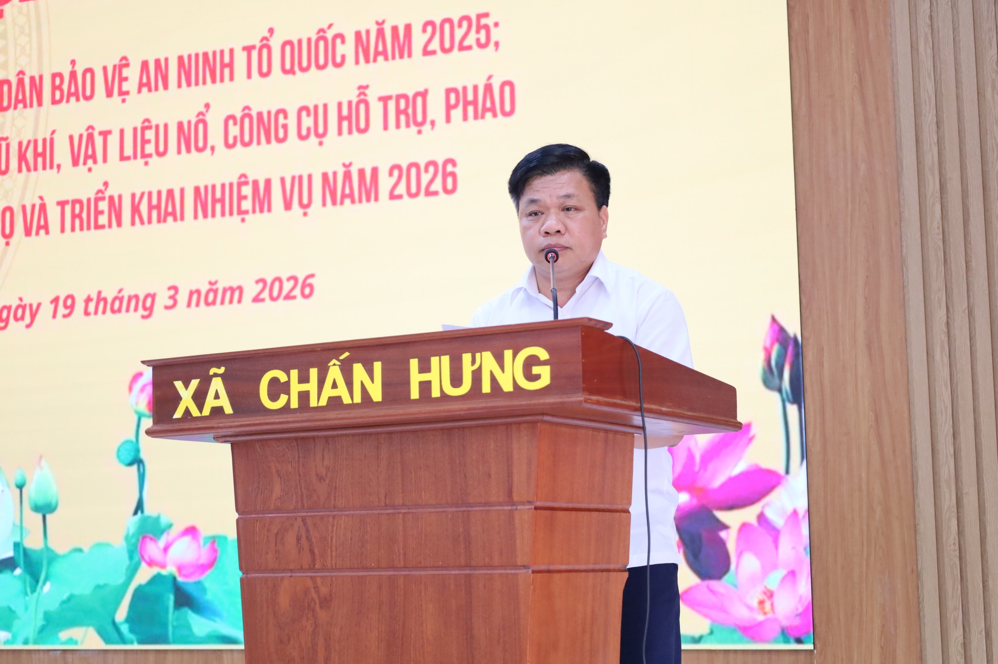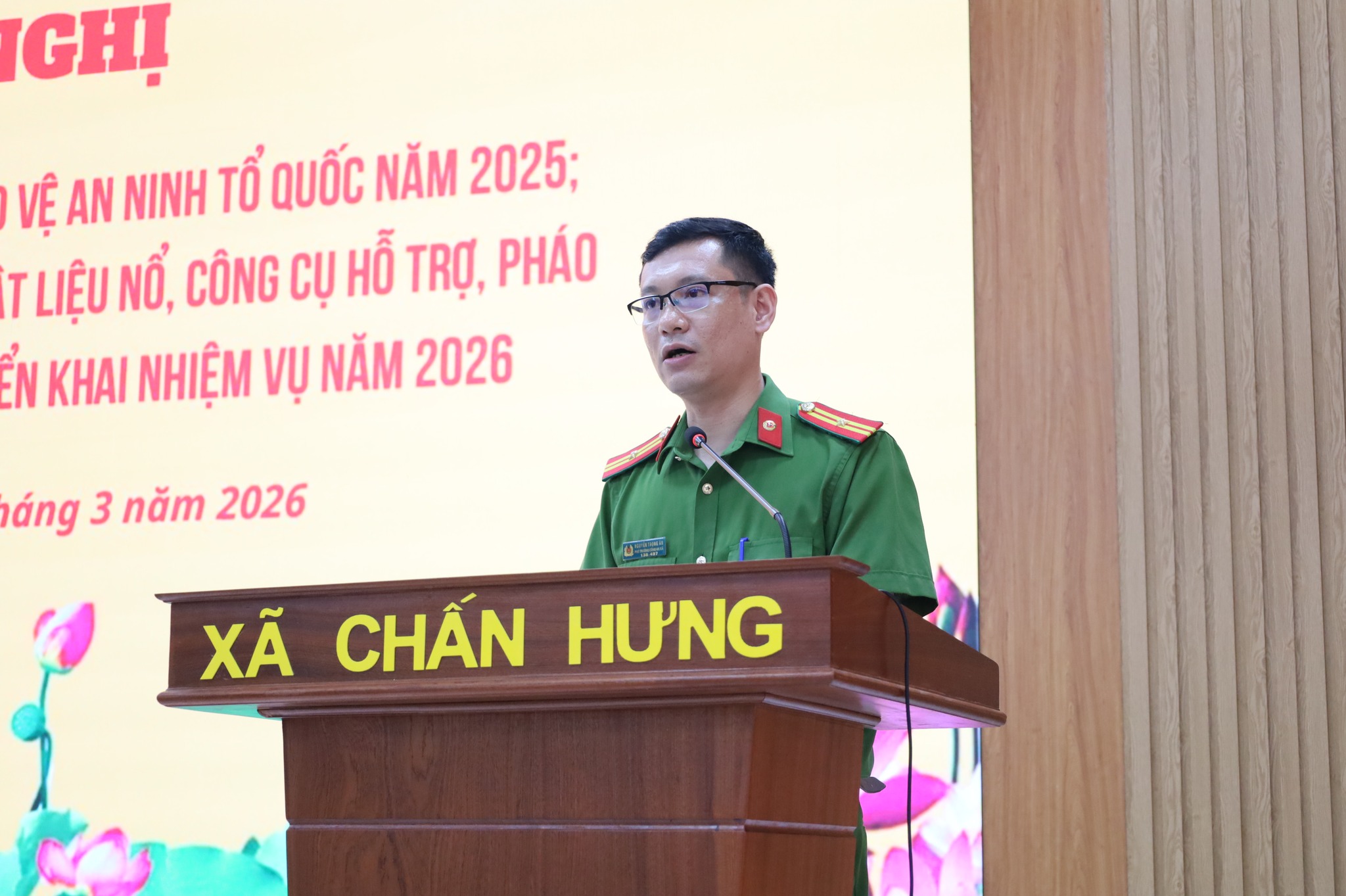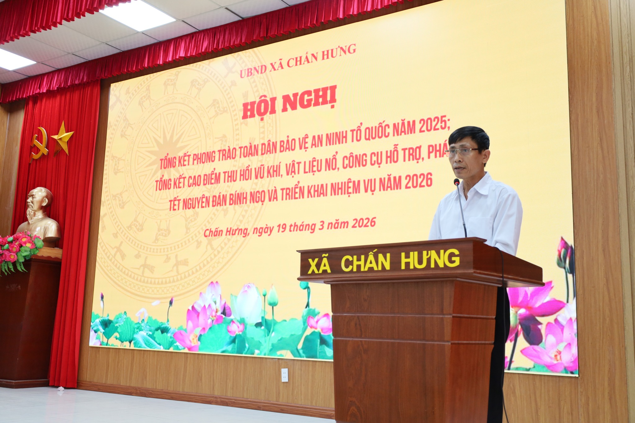 Sáng ngày 19/3/2026, tại Hội trường UBND xã Chấn Hưng đã tổ chức Hội nghị tổng kết phong trào “Toàn dân bảo vệ an ninh Tổ quốc” năm 2025; tổng kết cao điểm vận động thu hồi vũ khí, vật liệu nổ, công cụ hỗ trợ, pháo dịp Tết và triển khai nhiệm vụ năm 2026.