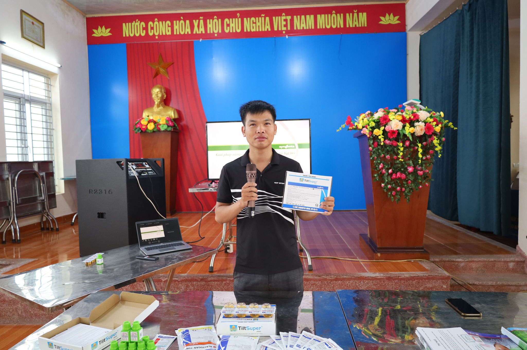 Đồng thời, hội nghị cũng được nghe đồng chí Nguyễn Ngọc Sơn – cán bộ kỹ thuật của công ty Sygenta - giới thiệu về công ty, một số loại thuốc bảo vệ thực vật đặc hiệu, hiệu quả cao trong phòng trừ sâu bệnh hại trên lúa và rau màu, nghe chia sẻ về hiệu quả của các hộ nông dân đã trực tiếp sử dụng thuốc, giúp bà con lựa chọn và sử dụng đúng cách, đảm bảo an toàn và nâng cao năng suất.